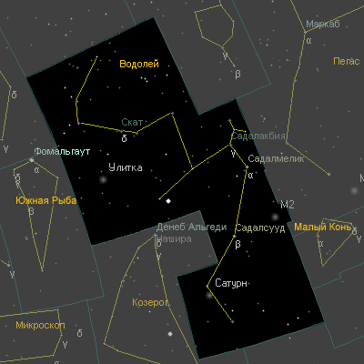 Найти это созвездие трудно, расположено оно под созвездием Пегаса. Группа звезд в верхней его части образует четырехугольник, который представляют в виде кувшина во главе со звездой Садалмелек. Из кувшина как бы вытекают струи воды во все стороны.