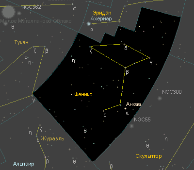 Созвездие Феникса легко найти на небе между ? Эридана и ? Южной Рыбы.