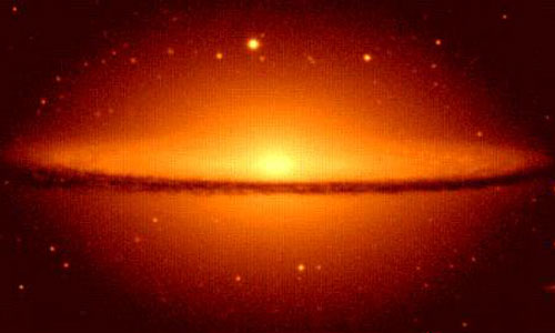 Спиральная галактика M104 (Сомбреро) в созвездии Девы. Хорошо заметная на снимке темная линия пыли и гало из звезд и шаровых скоплений и дали название этой галактике.
