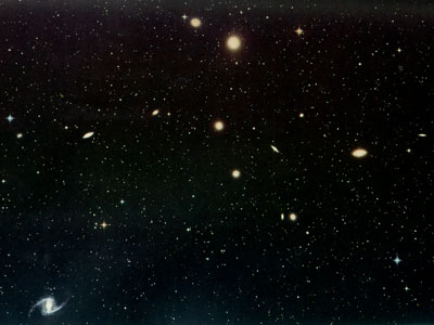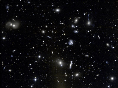 Скопление в созвездии Волосы Вероники. Мы его видим таким, каким оно было 400 миллионов лет назад.