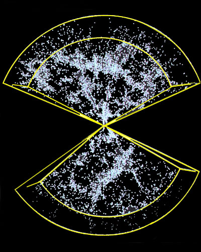 На этой трехмерной карте, покрывающей около трети неба, отмечены более 11 тысяч галактик.