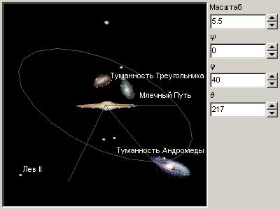 В Местную группу галактик, размеры которой 1,5 Мпк, входит наша Галактика, Туманность Андромеды M31, Туманность Треугольника M33, Большое Магелланово Облако (БМО), Малое Магелланово Облако (ММО), неправильные галактики NGC 6822, IC 1613, карликовые галактики – всего около сорока галактик, связанных взаимной гравитацией. Согласно последним исследованиям Местная группа движется со скоростью 635 км/с относительно соседних скоплений.
