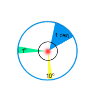 На небесной сфере рассматривают лишь угловые расстояния. Угловое расстояние между двумя точками сферы – это угол между лучами, исходящими в направлении двух этих точек из глаза наблюдателя. Приняты следующие единицы угловых расстояний: