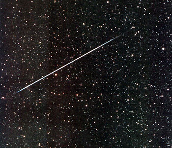 Метеорное тело – это кусок камня или скопление пыли в космическом пространстве. Поверхность Земли постоянно бомбардируется небесными телами самых разных размеров. При трении об атмосферу частицы разогреваются и сгорают или испаряются, оставляя за собой яркий след – метеор. Метеором называется световое явление, возникающее на высоте от 80 км до 130 км от поверхности Земли при вторжении в земную атмосферу частиц – метеорных тел. Скорости движения метеорных тел различны – от 11 до 75 км/с. Кроме единичных, спорадических метеоров, можно наблюдать и метеорные потоки.